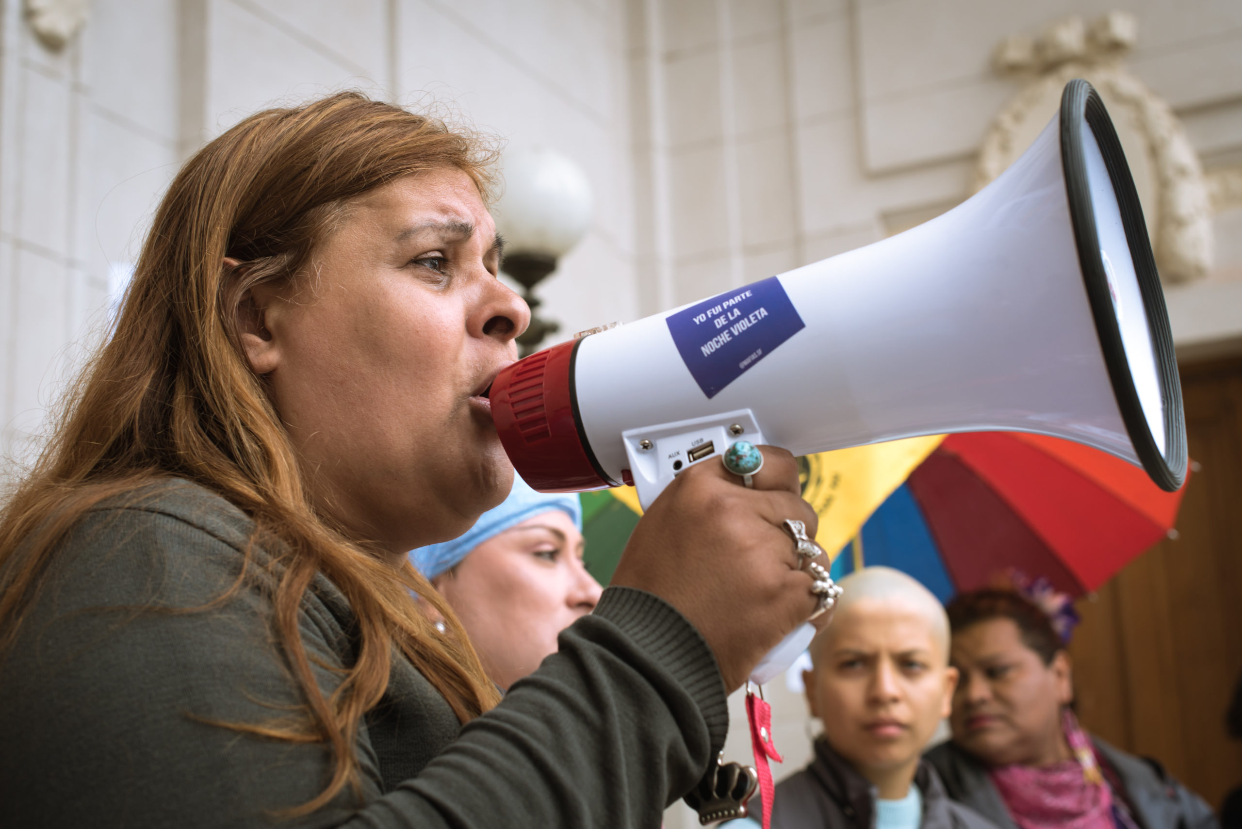 La foto pudo haber sido tomada en 2015 durante la primera oleada del Ni Una Menos, o en 2018 en el debate por la educación sexual integral, o en 2020 mientras se discutía la ley de cupo laboral trans. Es una foto atemporal. Alejandra Ironici siempre militó las causas de ampliación de derechos.