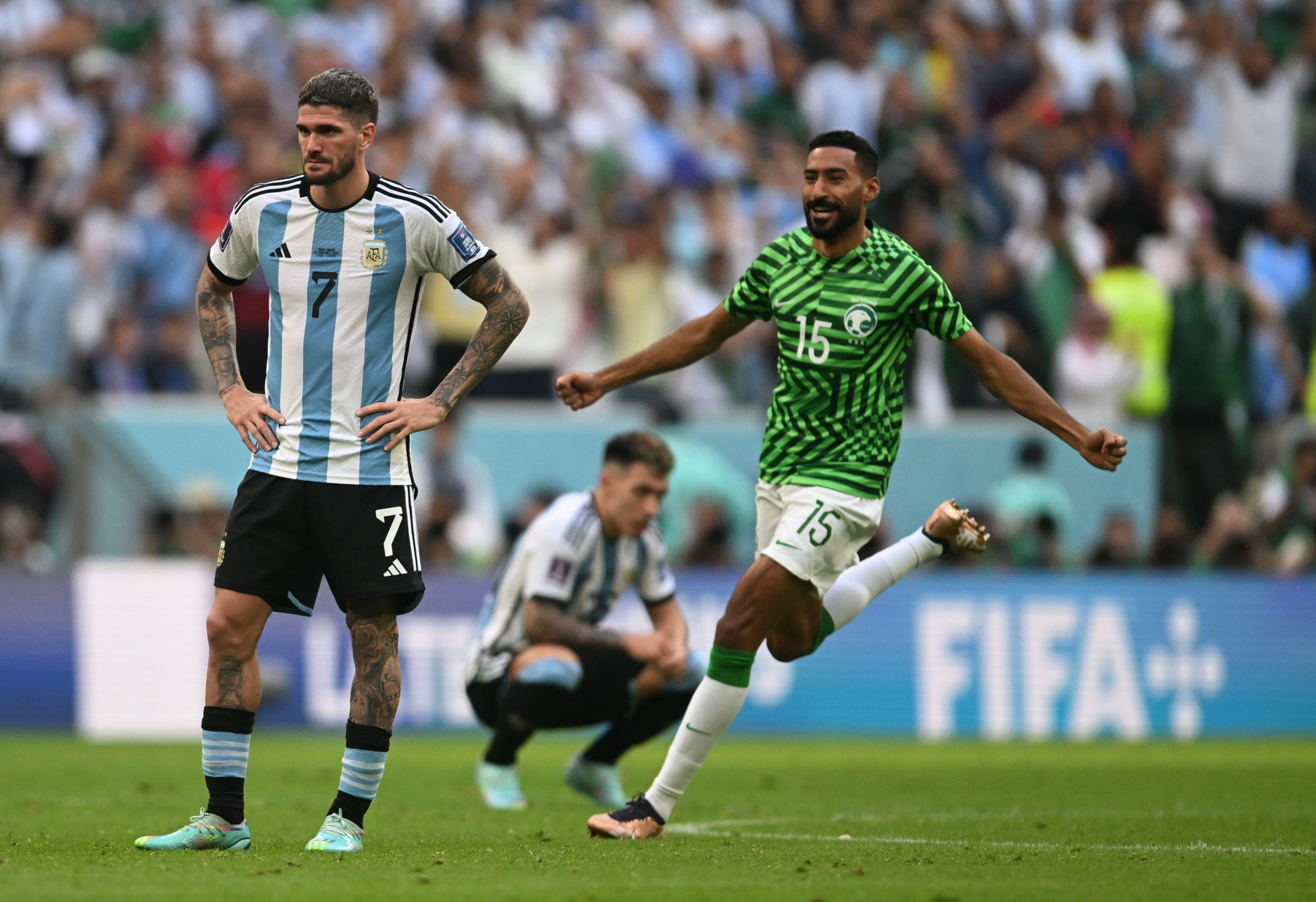 Al inicio del segundo tiempo Argentina recibió dos puntazos en cinco minutos de Saleh Al Shehri al minuto 48 y el segundo de Salem Al Dawsari al minuto 53. Aunque Argentina siguió proponiendo durante la segunda parte este resultado se mantendría hasta el final de un partido muy cortado y de muchas faltas.