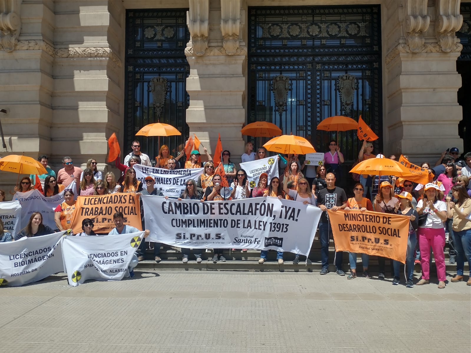 El Sindicato de Profesionales Universitarios de la Sanidad (SiPrUS) se movilizó hoy desde el Ministerio de Salud hasta la Casa de Gobierno para exigir que se concrete el cambio de escalafón. Desde el gremio denuncian que el gobierno provincial no cumple con la Ley 13.913, sancionada en 2019, que establece la incorporación de les profesionales universitaries de la salud al escalafón determinado por la Ley 9282, y que esto afecta a cientos de trabajadores del sector público.
