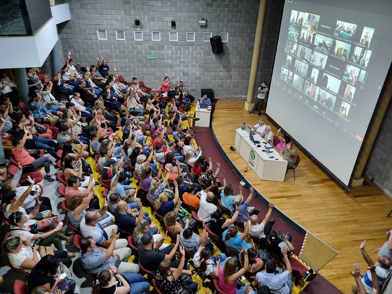 El plenario donde se tomó la decisión se desarrolló en el auditorio de la sede gremial y participaron integrantes del Consejo Directivo Provincial, secretarios y secretarias generales de seccionales y delegaciones de la provincia a través de la plataforma Zoom y representantes de juntas internas de delegados y delegadas, quienes fueron los que realizaron los informes de las consultas realizadas en todo el territorio provincial.