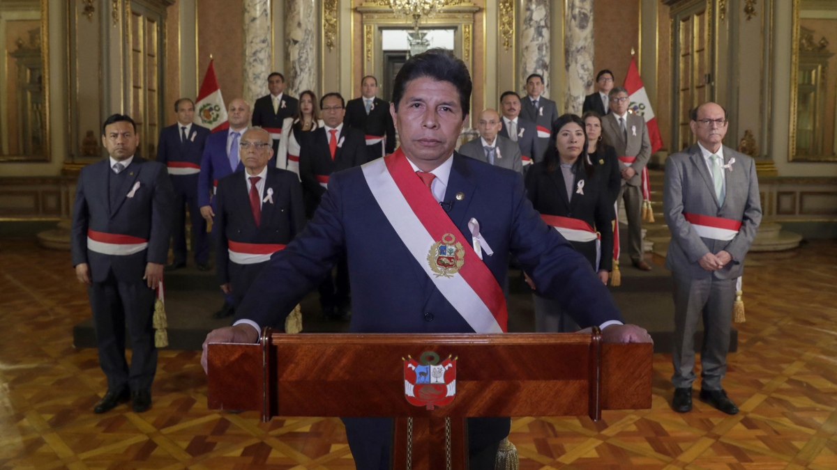 El Congreso peruano se preparaba hoy para discutir por tercera vez la destitución de Pedro Castillo por "permanente incapacidad moral". Frente a este escenario, Castillo anunció esta mañana una serie de medidas que incluían la disolución del congreso, la instauración de un gobierno excepcional de emergencia que funcionara a través de decretos, el toque de queda a nivel nacional y la convocatoria a elecciones para un nuevo cuerpo legislativo en un plazo no mayor que nueve meses.