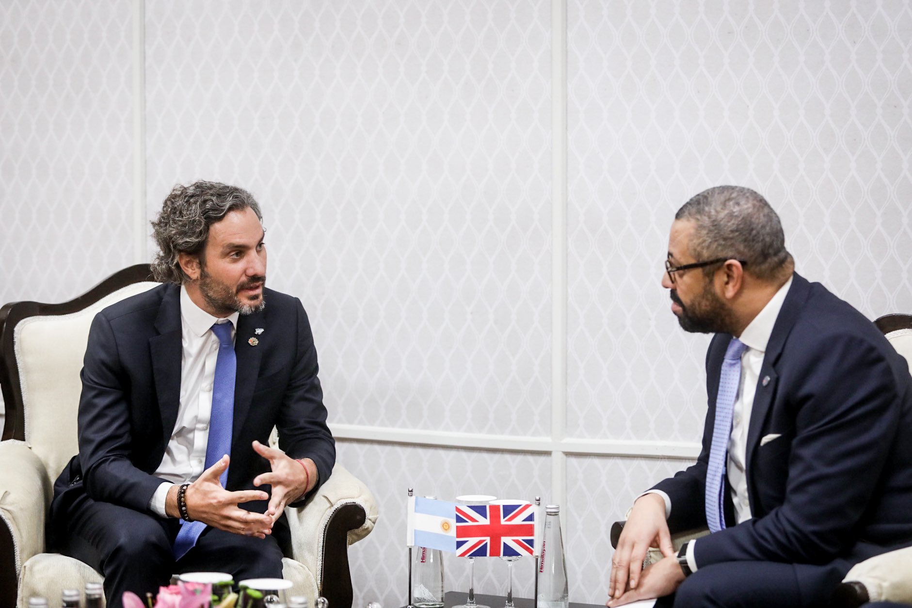El canciller Santiago Cafiero se reunió este jueves con su homólogo británico James Cleverly, en Nueva Delhi, en el marco de la Cumbre de Cancilleres del G20. Allí le planteó la cuestión Malvinas, invadidas por los británicos en 1833, y le notificó (en forma verbal y por escrito) la decisión del Gobierno argentino de poner fin al pacto 'Foradori-Duncan', al considerarlo "lesivo" para los intereses nacionales.
