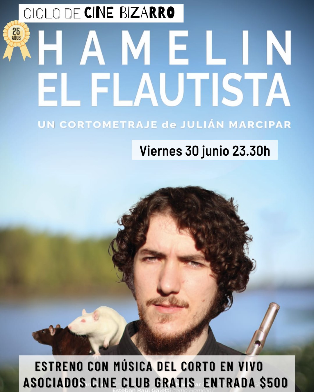 Este viernes, en el Ciclo de Cine Bizarro se presenta el estreno de Hamelin el Flautista, cortometraje del local Julián Marcipar (Argentina, 2023, 15m.SAM 13). | Función: Viernes 23:30.