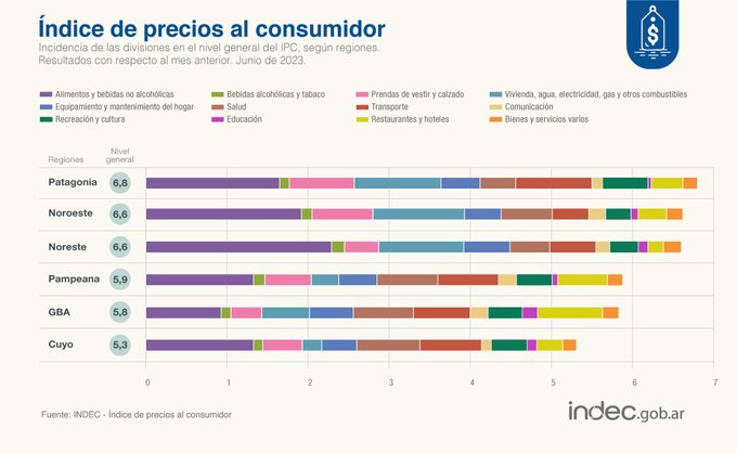 En junio, la división con mayor incidencia en todas las regiones del país fue Alimentos y bebidas no alcohólicas, con una suba promedio de 4,1%.