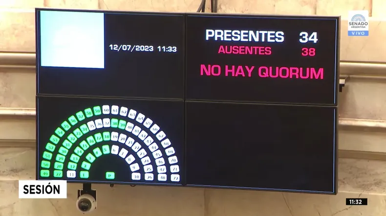 Pasada la media hora reglamentaria de espera, a las 11.30, la presidenta provisional del Senado, Claudia Ledesma, anunció que no se había reunido el número necesario, ya que sólo 34 senadores estaban en el recinto.