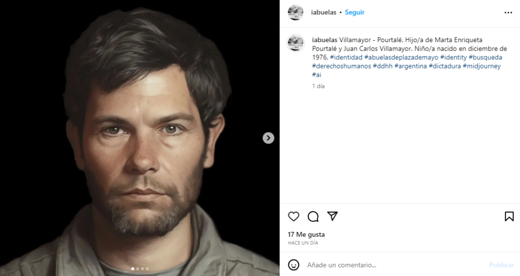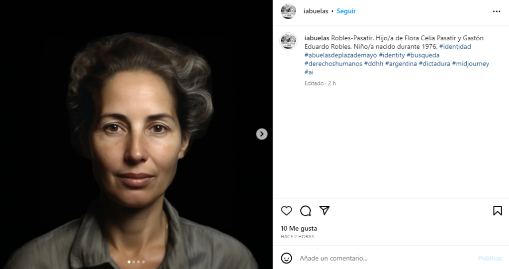 Quizás le encontramos (por fin) un uso interesante a la Inteligencia Artificial: hace unos días se creó una cuenta de Instagram en la que se publican imágenes generadas con este mecanismo para tener una referencia de cómo se verían los nietos y nietas apropiados que aún no han sido recuperados por las Abuelas de Plaza de Mayo. Aunque el proyecto no forma parte oficialmente de la ONG, sus creadores destacan que su intención es colaborar en la recuperación de dichos nietos, hijos de desaparecidos durante la última dictadura.