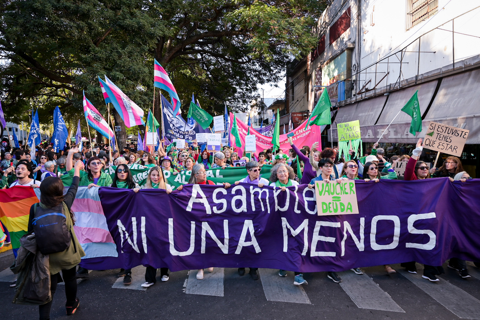 "En este día se ven amenazados nuestros derechos, ya no sólo la IVE, sino otros que ganamos en las calles", remarca el documento consensuado por la Asamblea Ni Una Menos Santa Fe, que manifiesta la importancia de la movilización en un contexto electoral difícil: "Hoy más que nunca las feministas y transfeministas debemos hacer oír nuestra voz y reafirmar nuestra firme decisión de resistencia en las calles y en todos los ámbitos para que no haya retrocesos y para continuar la lucha por una sociedad más justa e igualitaria. Por eso nos reunimos en esta plaza con una gran consigna: no queremos volver para atrás, no queremos que nos quiten lo que tenemos y no queremos sufrir los planes que tienen los candidatos de La Libertad Avanza y Cambiemos para la Argentina que se viene".