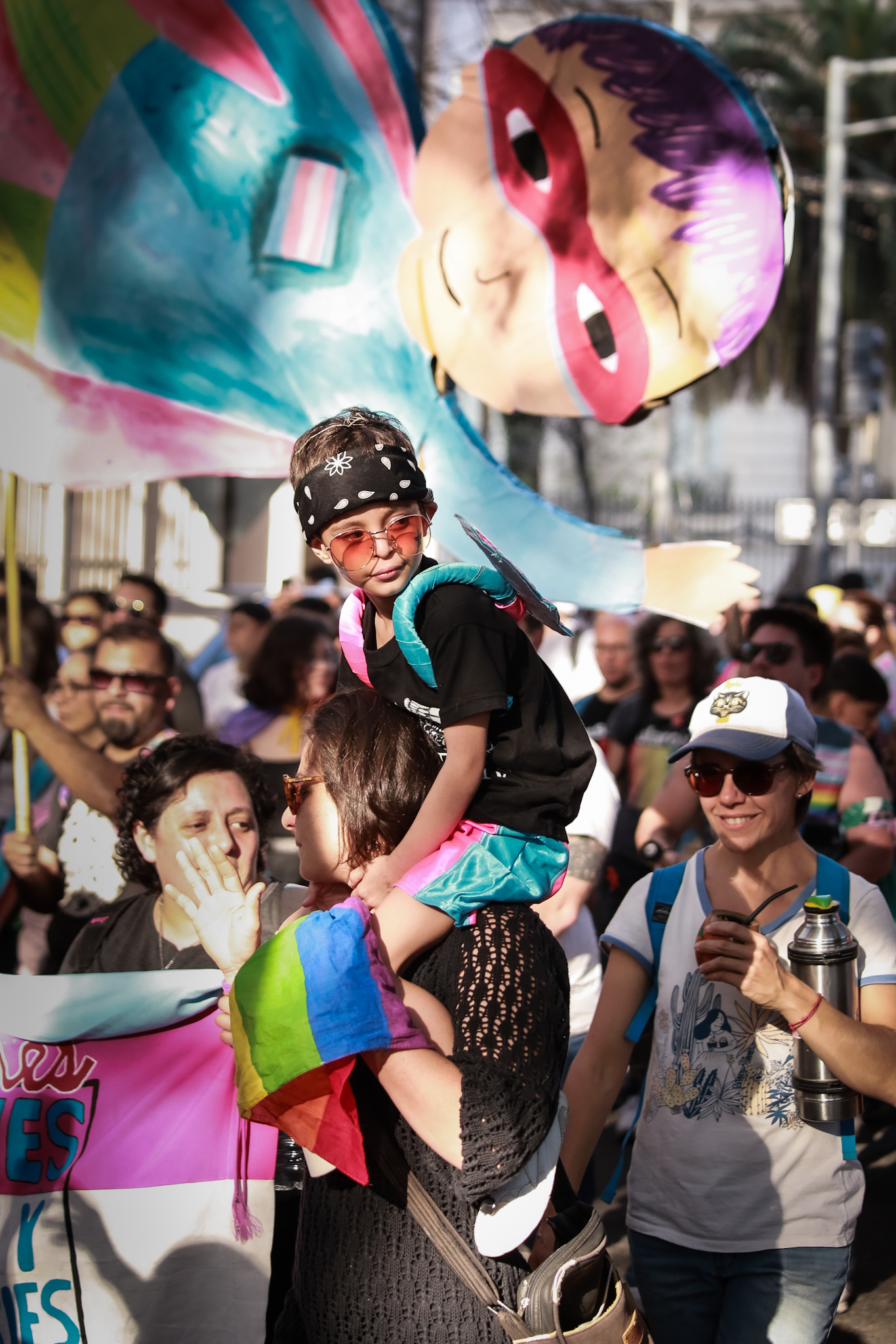 La convocatoria, que siempre se realiza en diciembre pero este año la organización decidió adelantar de cara a las próximas elecciones presidenciales, tuvo su punto de salida en la costanera este, frente al complejo Piedras Blancas. Bajo el fuerte sol de una tarde de octubre que bien podría haber sido de diciembre, lesbianas, maricas, travas, trans, bisexuales, no binaries, iniciaron la movilización llenando de color el Puente Colgante.