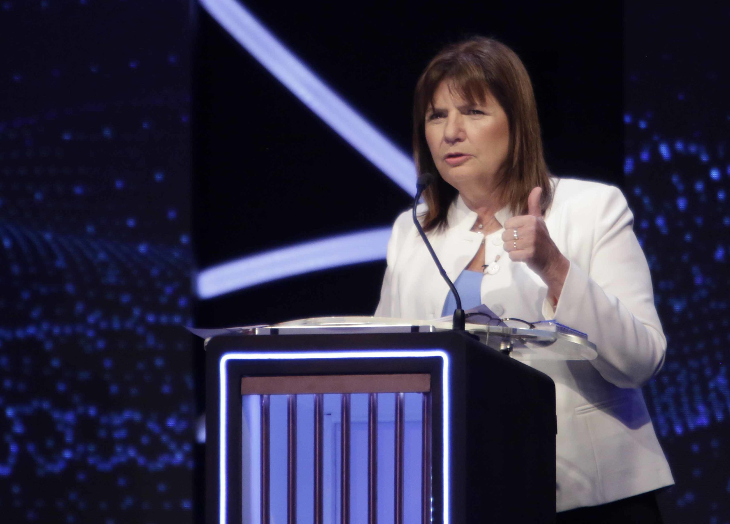 Patricia Bullrich fue uno de los puntos más bajos del debate. En lo formal, trastabilló, se pasó de tiempos, fue retada por los conductores y tratada de ignorante por más de un adversario. Hasta le tiró un centro a Sergio Massa. En el contenido, no dejó ninguna propuesta clara, excepto que va a reprimir.