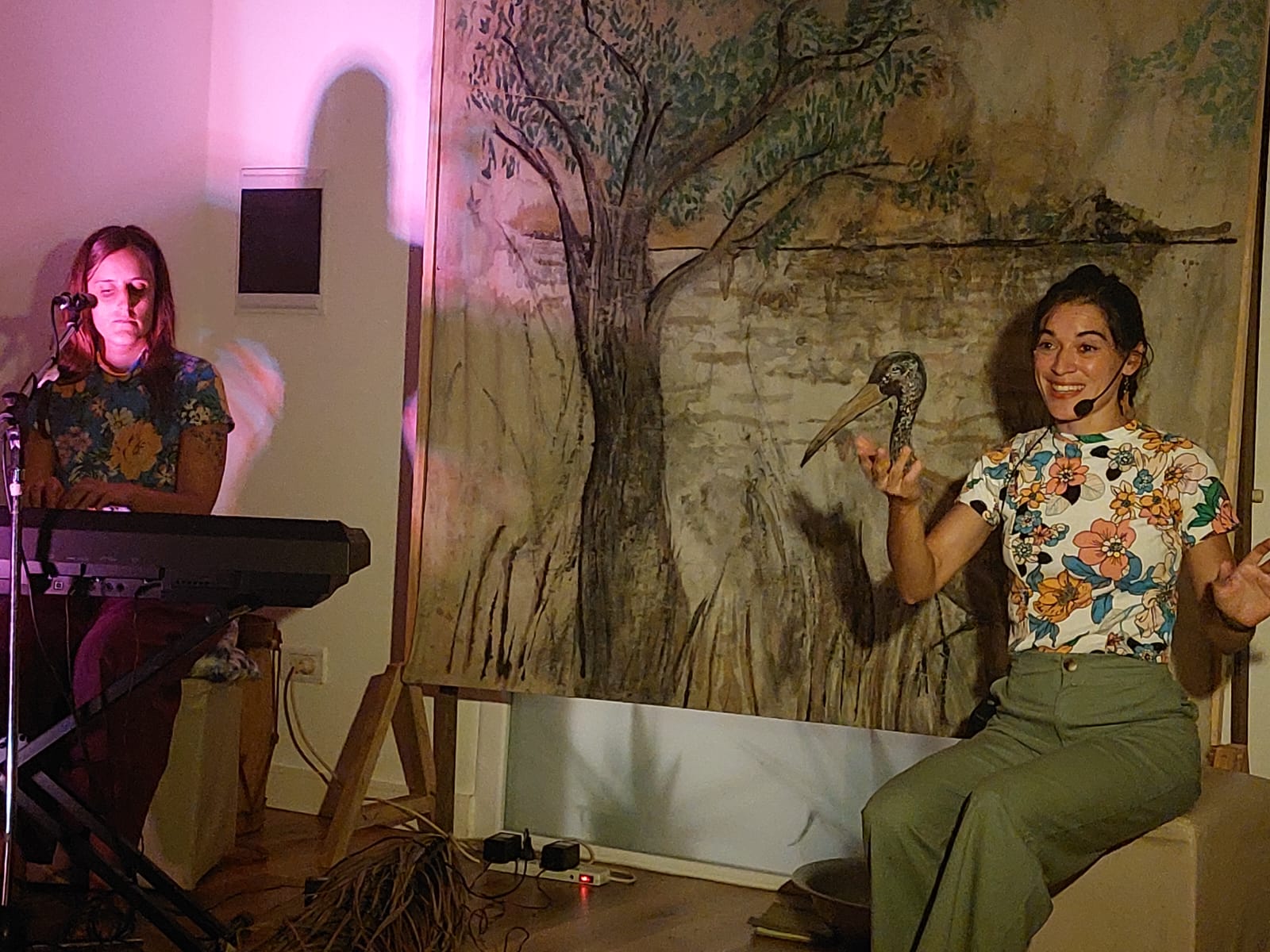 El caraú, el timbó, la calandria, el pitogüé, el pombero, el diablo. El río y el monte están habitados por personajes que cantan su alegría o su dolor. Las artistas, Celeste Abba en la narración y Agustina Cortés en la música, invitan a una puesta escénica donde la música y la palabra se unirán para tejer historias de nuestras aguas, nuestras costas y el monte litoraleño. Relatos que se cuentan desde hace muchas generaciones, que se transforman, se creen y se descreen. Una celebración de la palabra de pueblos originarios y antepasados que habitaron estas tierras con historias, que le dieron sentido a los cantos de los pájaros y al silencio de la siesta.