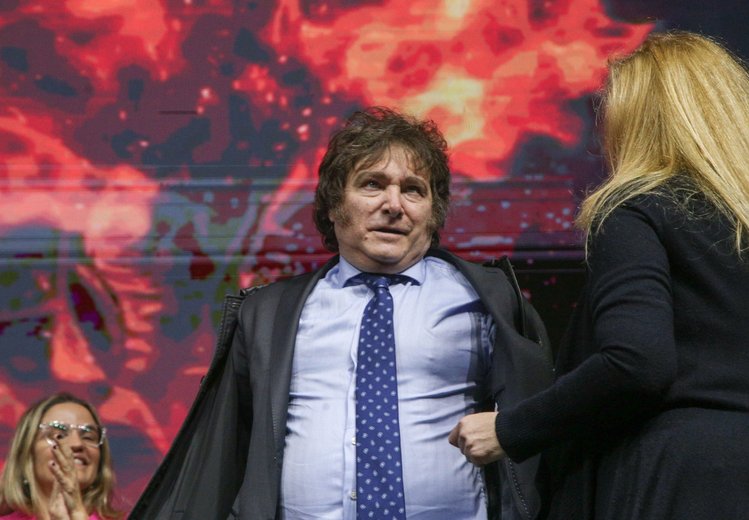 La gratificante locura del capital humano se celebra con el lema «¡Viva la libertad, carajo!». «Carajo» puede tener connotaciones fálicas, servir como recurso para enfatizar o para contradecir lo que se ha dicho previamente. En el discurso de Milei la virilidad y el énfasis se conquistan a través de la negación litúrgica. «Con la mía, no», porque nada erotiza más que la negación. La retórica libertaria es genuina pornografía porque no ofrece desahogo. A bordo de un avión de Aerolíneas Argentinas una señora ruega a Milei «¡decilo de vuelta, Presi, decilo de vuelta!» y el acto se repite generosamente: «¡Viva la libertad, carajo!». Se repite, al menos hasta ahora, sin resolución.
