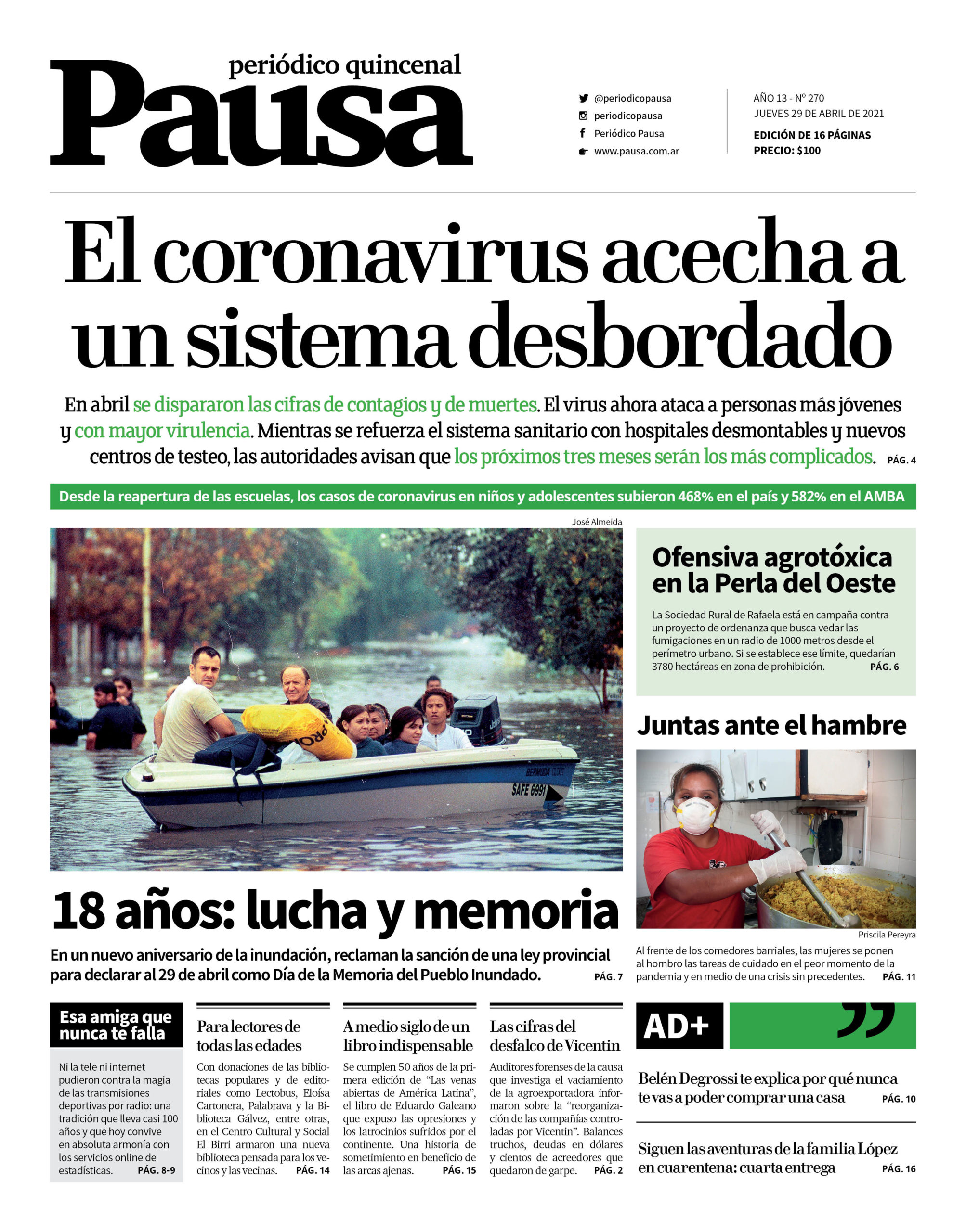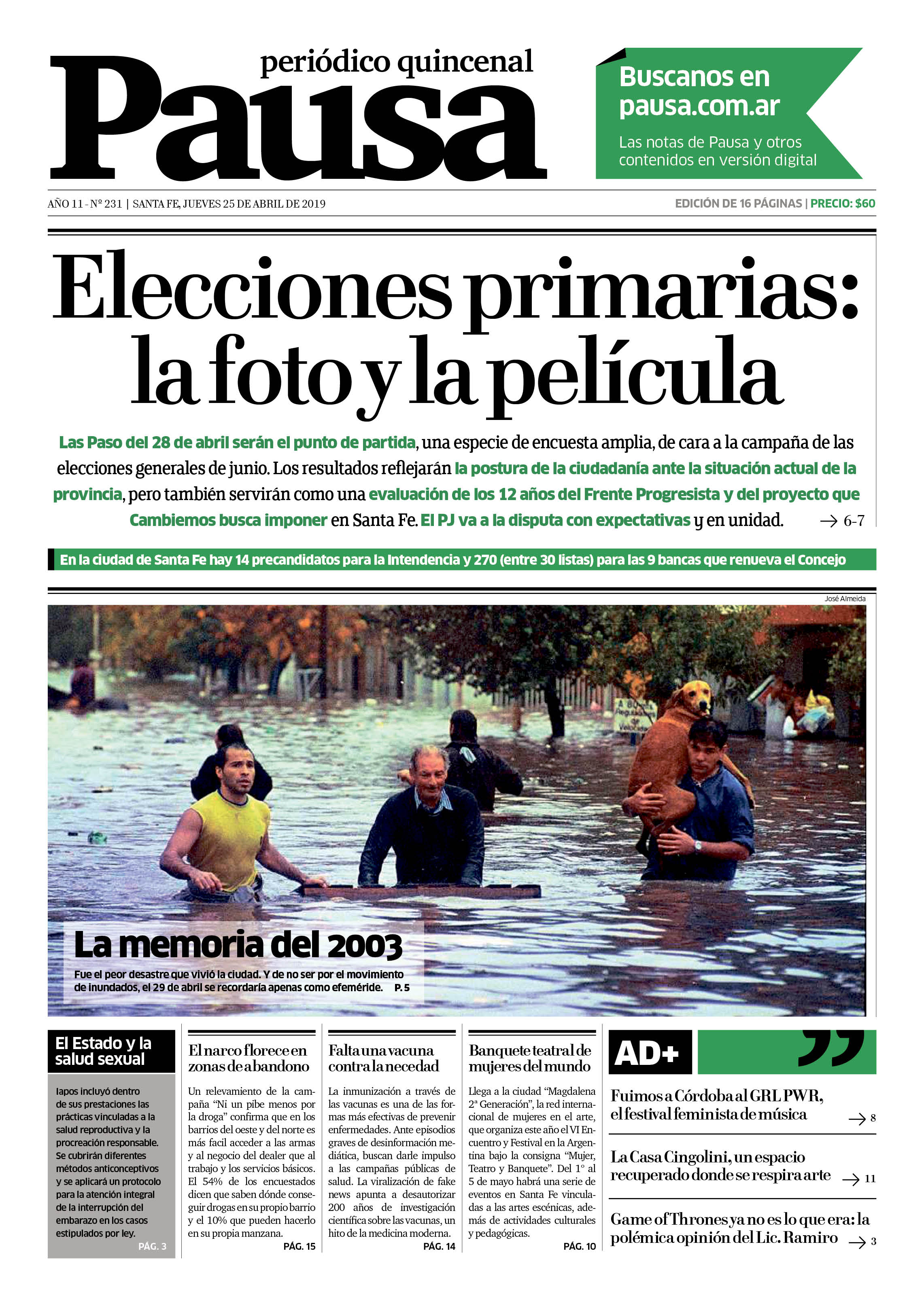 La primera publicación editorial de Pausa (bajo el sello Ediciones Bajo el fresno) contiene imágenes de la memoria colectiva de la ciudad en torno a la inundación de 2003, con fotos seleccionadas del reportero gráfico José Almeida. Sus imágenes forman parte de la cobertura que ha realizado Pausa históricamente sobre lo ocurrido hace casi 21 años en la capital santafesina.