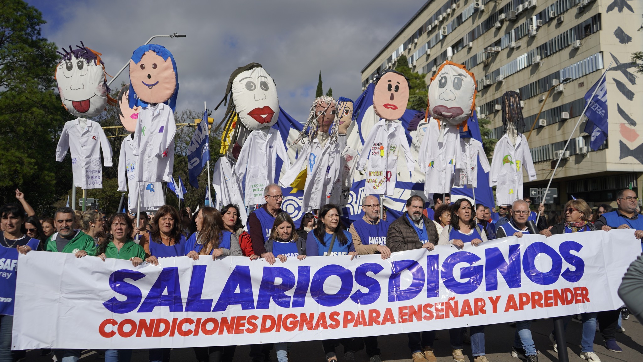 "Las amenazas y extorsiones no amedrentaron a la enorme cantidad de maestros y maestras que hoy pararon a lo largo y ancho de la provincia", señalaron desde Sadop en referencia al descuento anunciado por el gobierno de Maximiliano Pullaro para quienes se plegaran hoy a la propuesta.