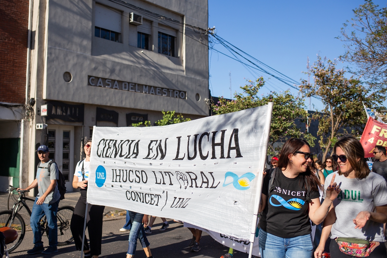 —Prometieron unas 800 y luego se dieron efectivamente unas 470 becas. Después tenés un montón de gente que, al no haberle dado la beca posdoctoral, tenía la doctoral, pero no accede. Tenés una amplia cantidad de gente. Más de 500 personas que terminan la doctoral, pero no tienen posdoctoral. Entonces, no pueden quedar en el sistema. Ahí ya tenés un egreso por este achicamiento. Después, fijate, hace poco tuvimos una reunión en el CCT para evaluar algunas cosas, y ese día me dicen: “Hace exactamente un año que no hay ningún ingreso ni a carrera ni a CPA”. O sea, ya pasamos un año sin que nadie ingrese en el sistema. Entonces, achicamiento de becas doctorales, achicamiento de becas posdoctorales y ningún ingreso. De esas personas que fueron evaluadas para el ingreso al sistema y la carrera de investigador, se presentaron a convocatoria 2022, fueron evaluadas en 2023. De esas personas, hay más o menos 850 personas que fueron seleccionadas y hace un año que están en espera. Fueron evaluadas y están en espera de ver si se pueden incorporar en el sistema. Acá en Santa Fe son 51 personas. Son 51 personas que hicieron toda la formación posdoctoral y que tienen ya el ingreso dado, pero no se efectiviza. Todo esto es por una política económica. Entonces, esa es la situación en la que estamos inmersos. Cuando vos escuchás en las noticias el presupuesto y lo proyectás para el año siguiente... Si esto tuvimos este año, el año que viene esto va a ser peor. Acá en el IHUCSO tenemos un proyecto que se llama PUE (Proyecto de Unidad Ejecutora). Este proyecto fue presentado en el 2022, se ganó el proyecto e incluía becas doctorales, posdoctorales y un personal de apoyo técnico. A vos te dan el proyecto y te dan la posibilidad de que tengas becarios. Los becarios se presentan, ganan, o sea, son seleccionados, y este año nos dicen que fueron denegadas todas por falta de presupuesto. Entonces, hay chicos que se presentaron en esa convocatoria y están esperando hace un año, creyendo que ya está, porque si está funcionando el proyecto, las becas deberían salir. A continuación, nos aparece una información de que fueron denegadas, que fue hace un mes más o menos, y a los pocos días nos dicen: “Hubo una resolución del directorio, por lo cual ya no va a haber más becas PUE”. Los PUE son herramientas que el Conicet había implementado en su momento para dar mayor crecimiento y fortalecer a institutos nuevos. En 2022 nos hacen un presupuesto de $6 millones. A finales del 2023 nos dan la primera cuota de $1.200.000. En el 2024, nos dan la segunda cuota $1.200.000. ¿Te das cuenta? Con el gasto inflacionario, un proyecto que no tiene becas, que no tiene personal de apoyo afectado al proyecto, y te dan ese monto sin ajustarlo presupuestariamente, es como un salvavidas de plomo. Termina siendo una carga llevarlo a cabo con tan pocos recursos.