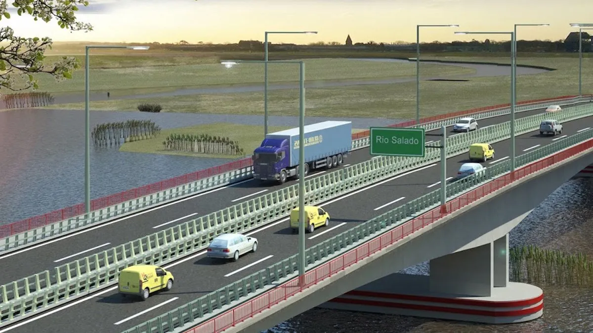 En cuanto al sector del puente, contará con una longitud de 1.300 metros. El proyecto incluye también la protección contra erosión del estribo. Además, se contempla la iluminación de todo el puente, la colocación de defensas metálicas y barandas.