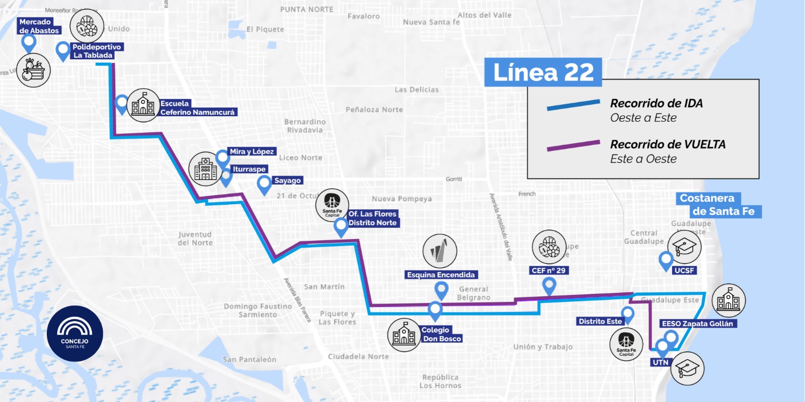 La línea 22 pasará por lugares estratégicos de la ciudad, como los hospitales Mira y López, Sayago, el Nuevo Iturraspe y dos universidades. Su implementación beneficiará a los vecinos que residen y transitan en la zona norte de nuestra ciudad.