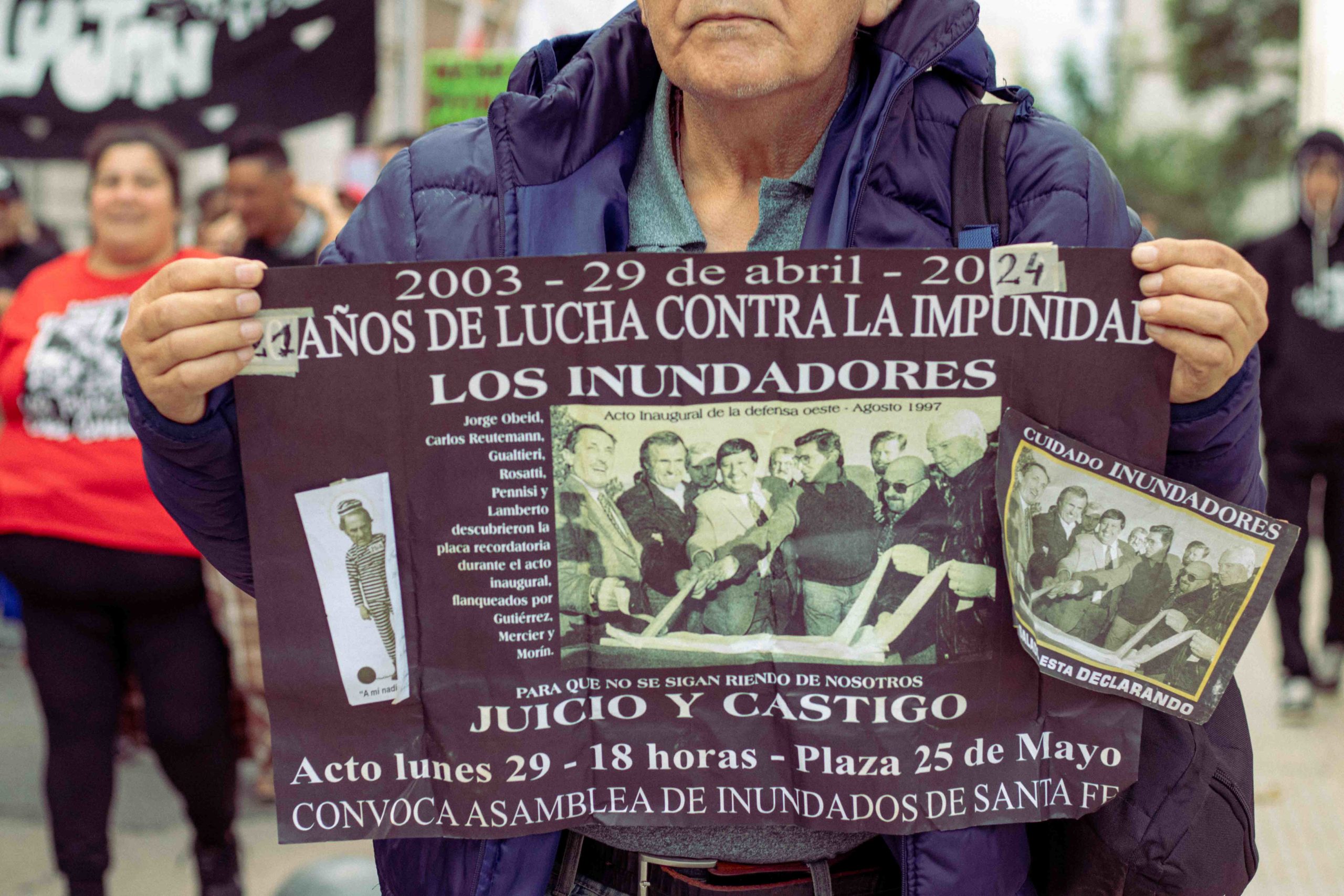 Pero es historia. Alcanza con poner en Google ambas consignas, y ver que rápidamente aparecen los afiches, representando a los grupos de inundados que resistieron al abandono del Estado y a la consagrada impunidad.